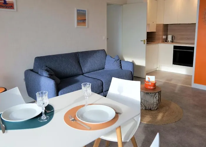 Obiekt noclegowy zapewnia gościom wygodę korzystania z udogodnień do samodzielnego przygotowywania posiłków, takich jak wyposażony aneks kuchenny i miejsce do jedzenia i jadalnia na świeżym powietrzu. Le Surcouf, oferująca dania kuchni francuskiej, znajduje się kilka kroków od obiektu. Położony przy plaży apartament mieści się około 25 km od Saint-Nazaire Montoir.